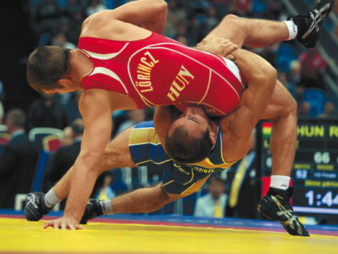 | В финал чемпионата мира Вачадзе (снизу) не пустил венгра Лоринца. Фото Роберта Максимова. |